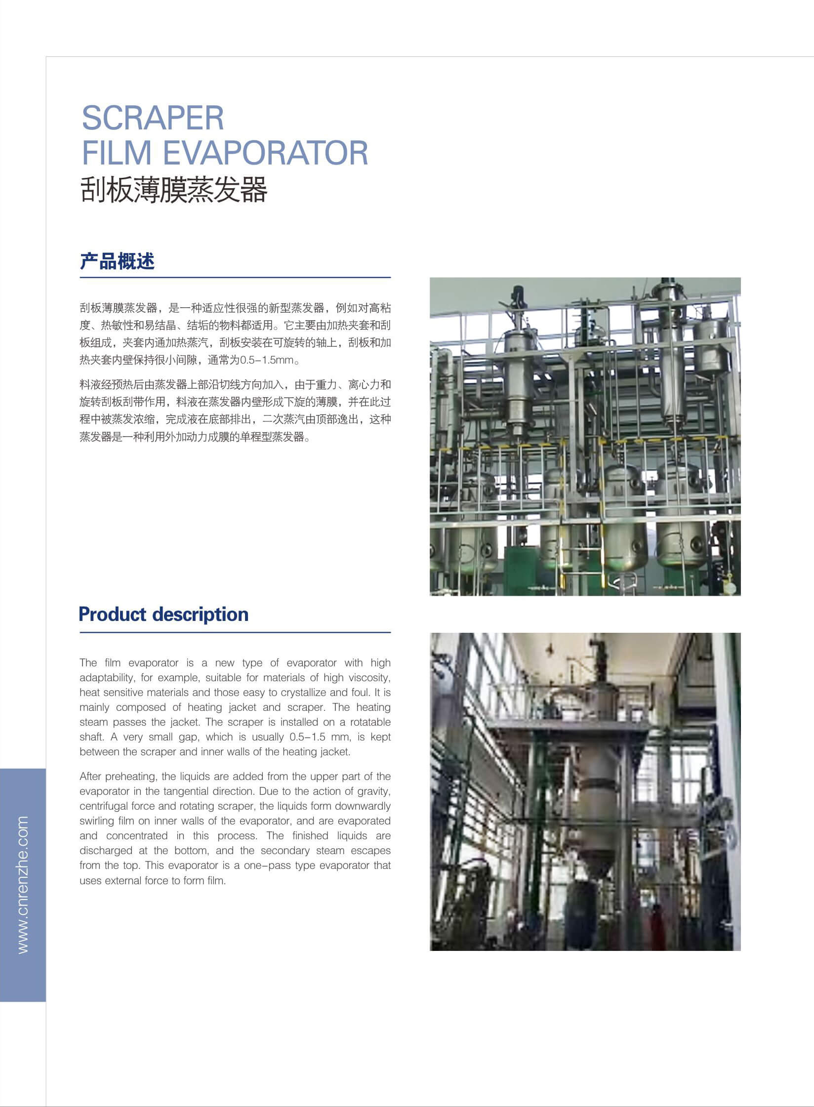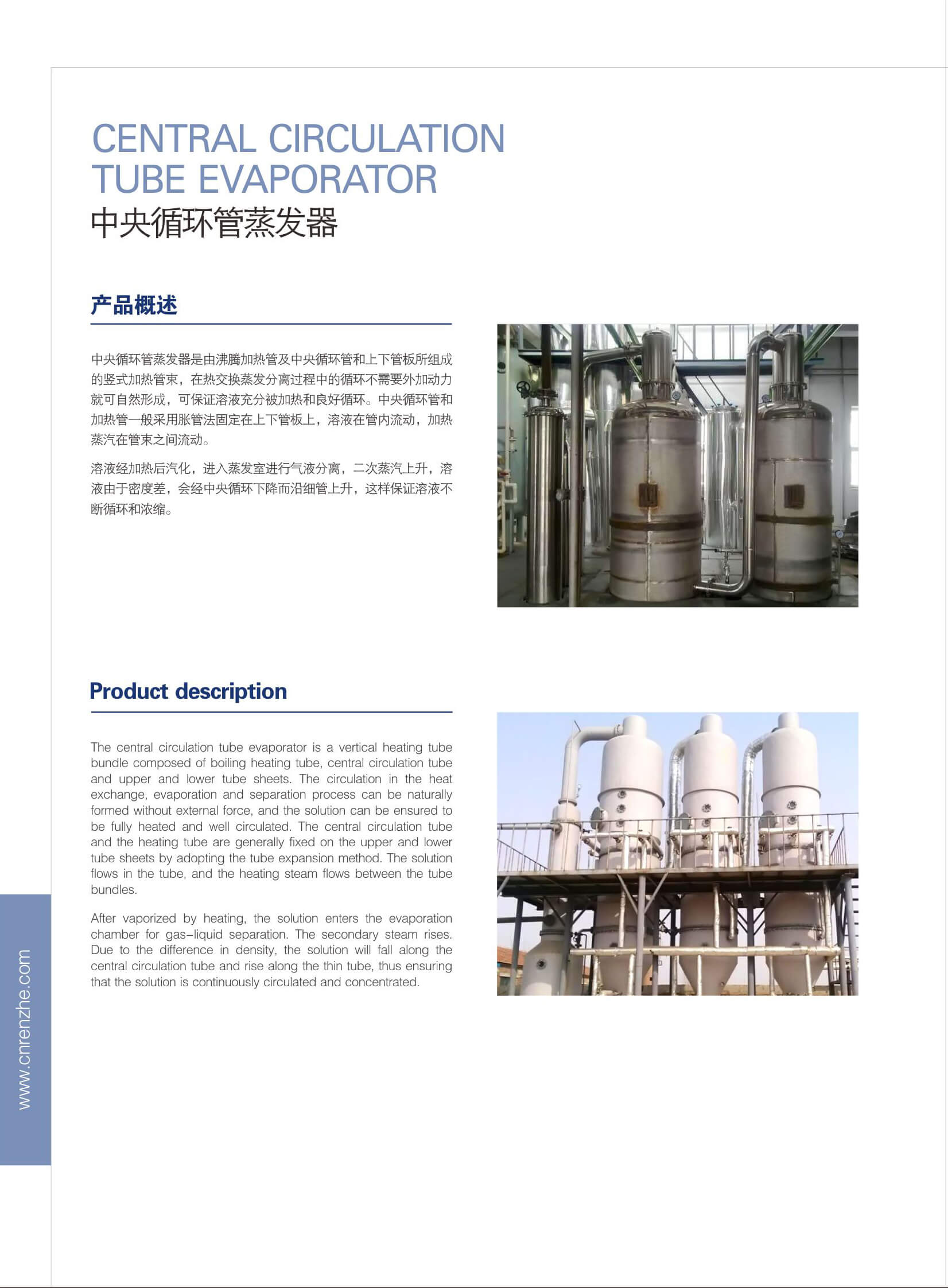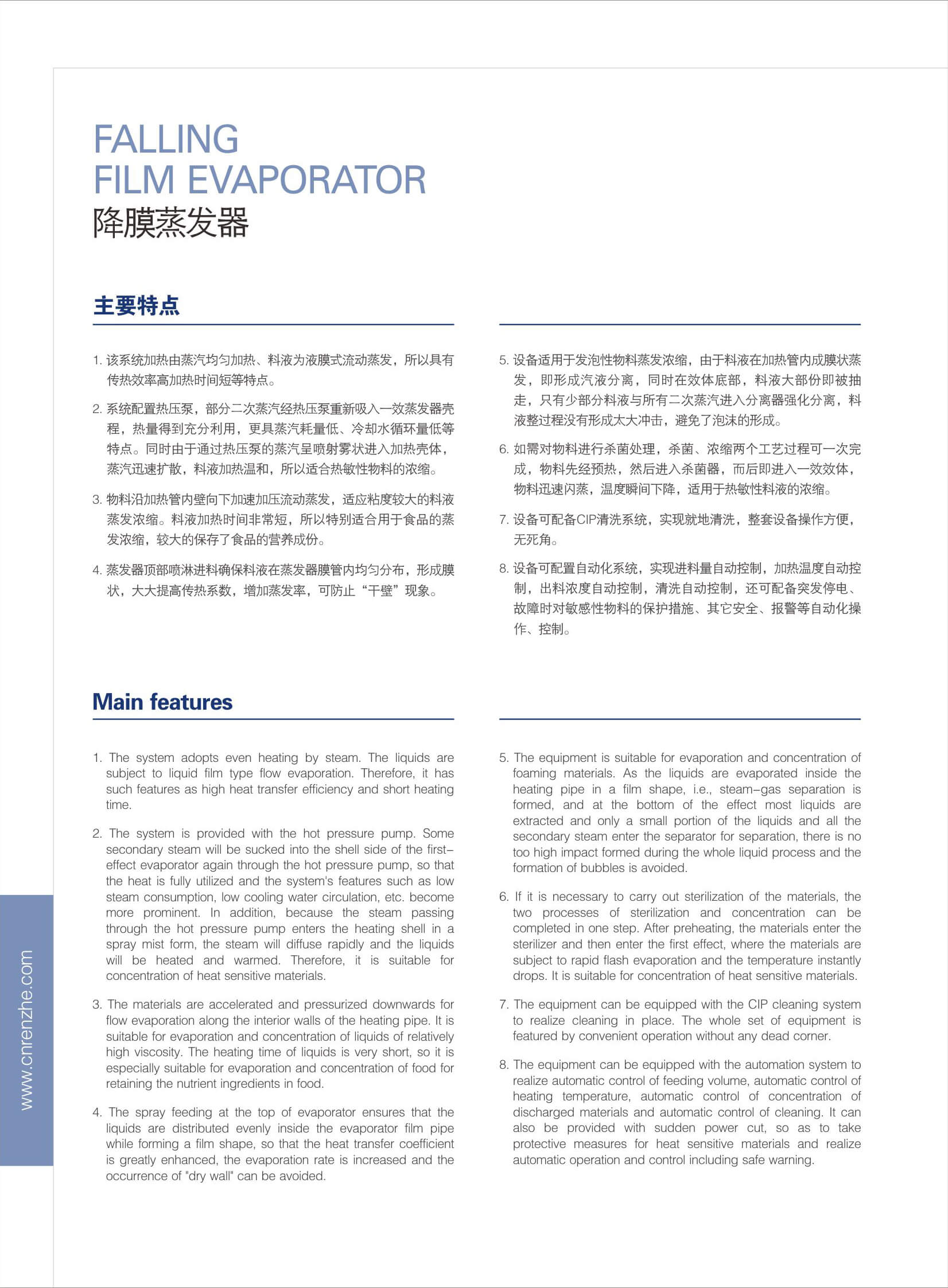 蒸發(fā)設(shè)備廣泛應(yīng)用于化工、醫(yī)藥和食品發(fā)酵等工業(yè)行業(yè)。蒸發(fā)器種類繁多,其分類方法也多種多樣。按使用目的分,有蒸發(fā) 濃縮型和蒸發(fā)結(jié)晶型;按加熱部分結(jié)構(gòu)分,有夾套式、列管式、長管式和短管式、垂直管式和水平管式;按能源利用方式分 ,有單效、多效、二次蒸汽壓縮式、多級(jí)閃蒸式;按物料流動(dòng)方式分,又可分為升膜式、降膜式、升降膜式等。盡管分類方 法各異,但其共同特點(diǎn)都一樣,就是將熱量傳遞給物料使溶液蒸發(fā)。