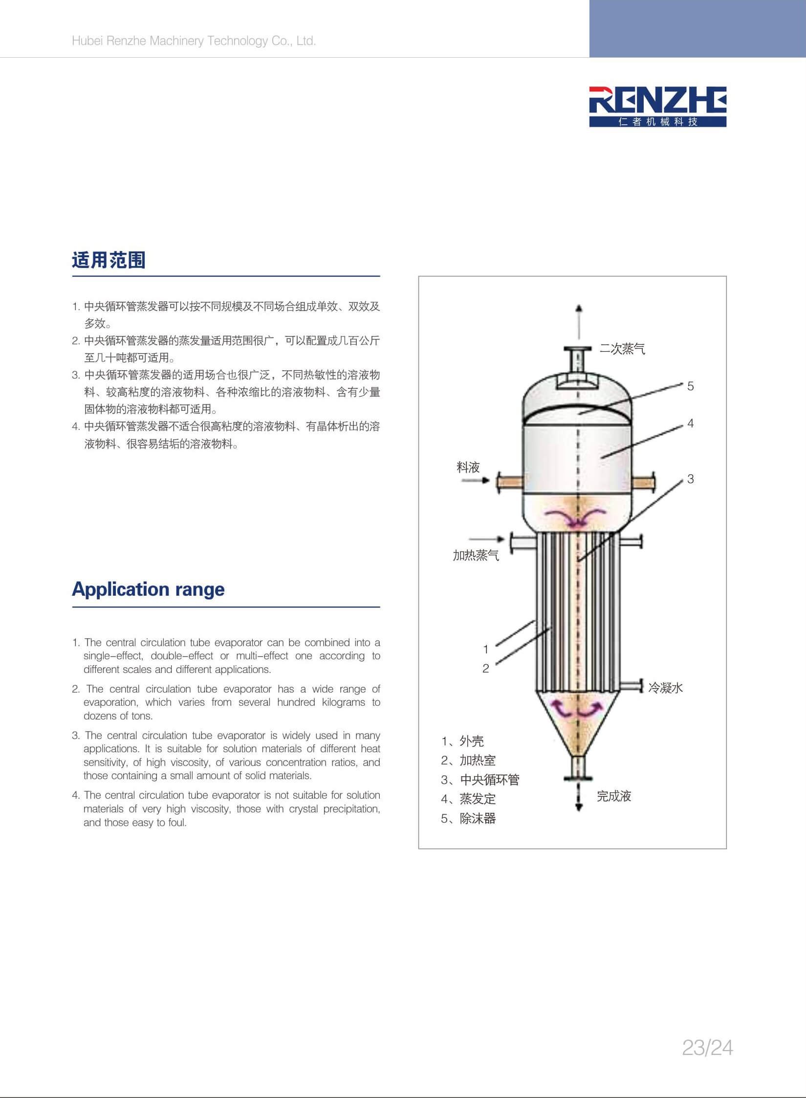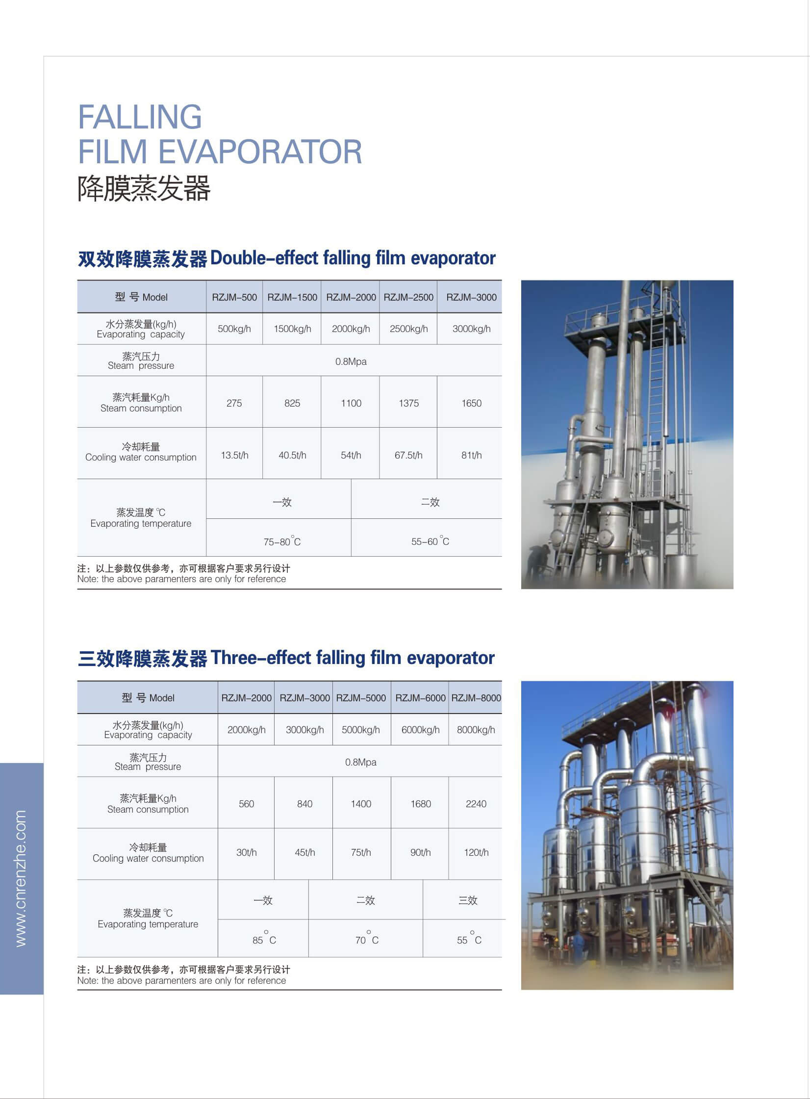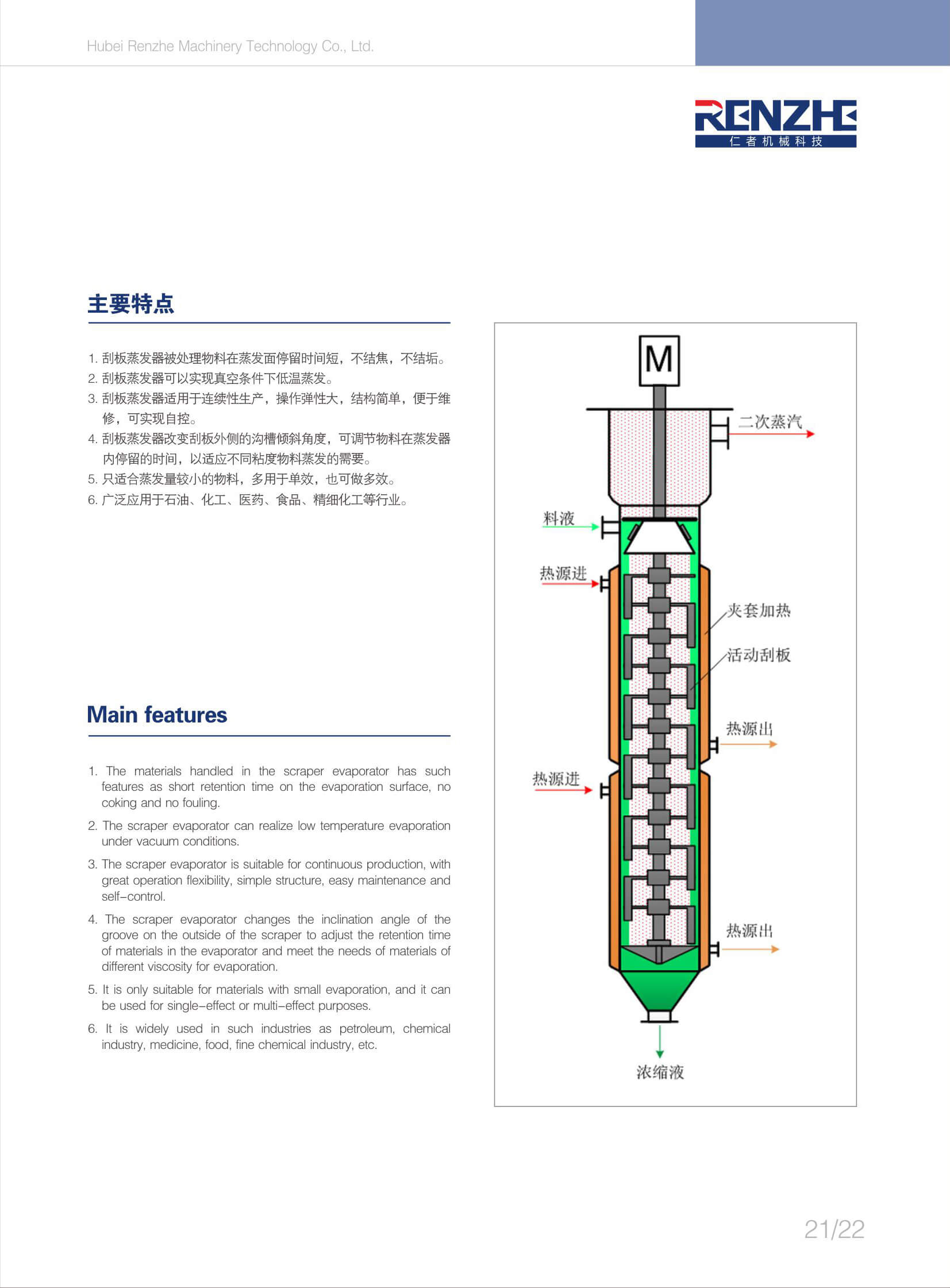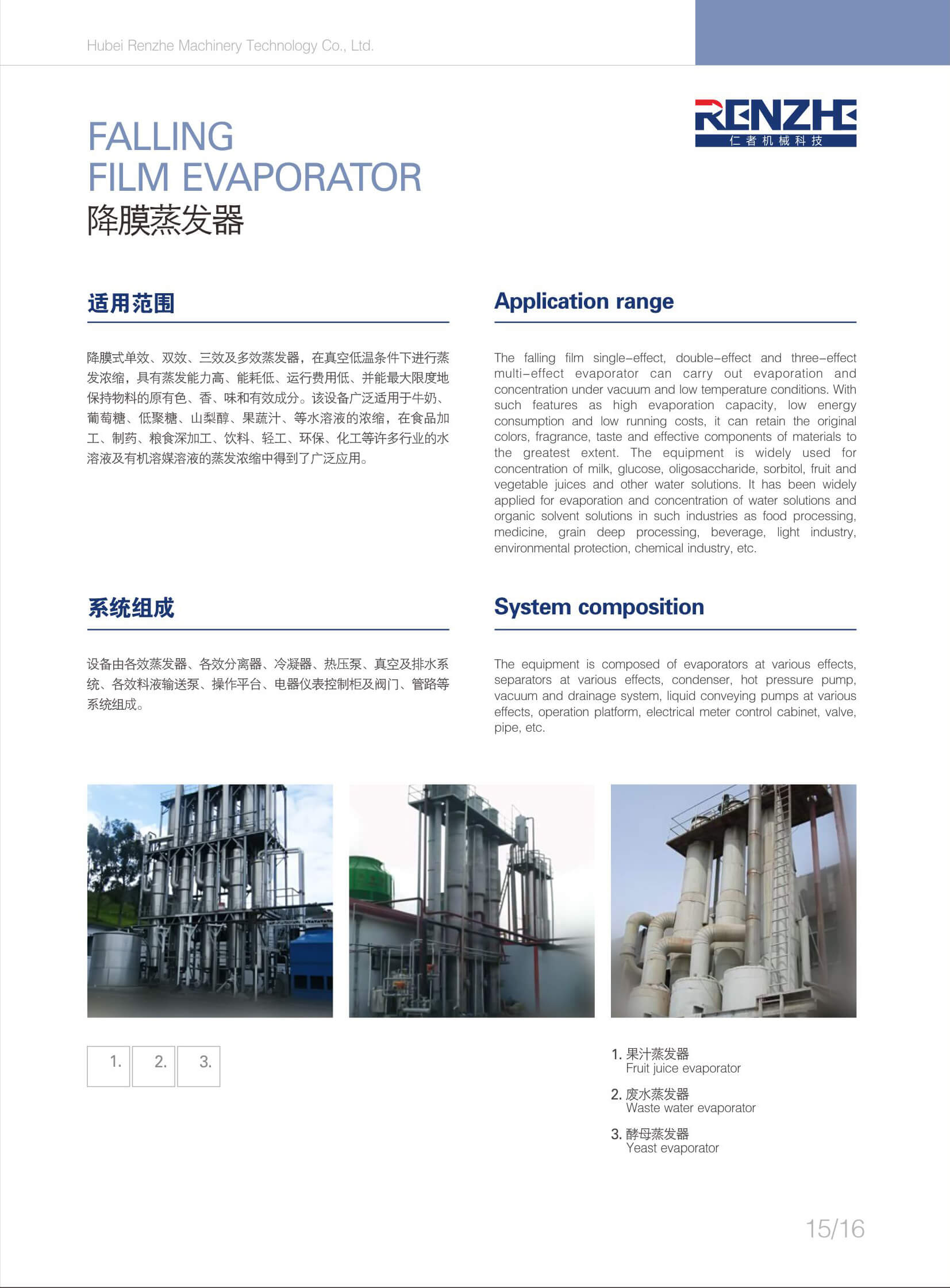 蒸發(fā)設(shè)備廣泛應(yīng)用于化工、醫(yī)藥和食品發(fā)酵等工業(yè)行業(yè)。蒸發(fā)器種類繁多,其分類方法也多種多樣。按使用目的分,有蒸發(fā) 濃縮型和蒸發(fā)結(jié)晶型;按加熱部分結(jié)構(gòu)分,有夾套式、列管式、長管式和短管式、垂直管式和水平管式;按能源利用方式分 ,有單效、多效、二次蒸汽壓縮式、多級(jí)閃蒸式;按物料流動(dòng)方式分,又可分為升膜式、降膜式、升降膜式等。盡管分類方 法各異,但其共同特點(diǎn)都一樣,就是將熱量傳遞給物料使溶液蒸發(fā)。