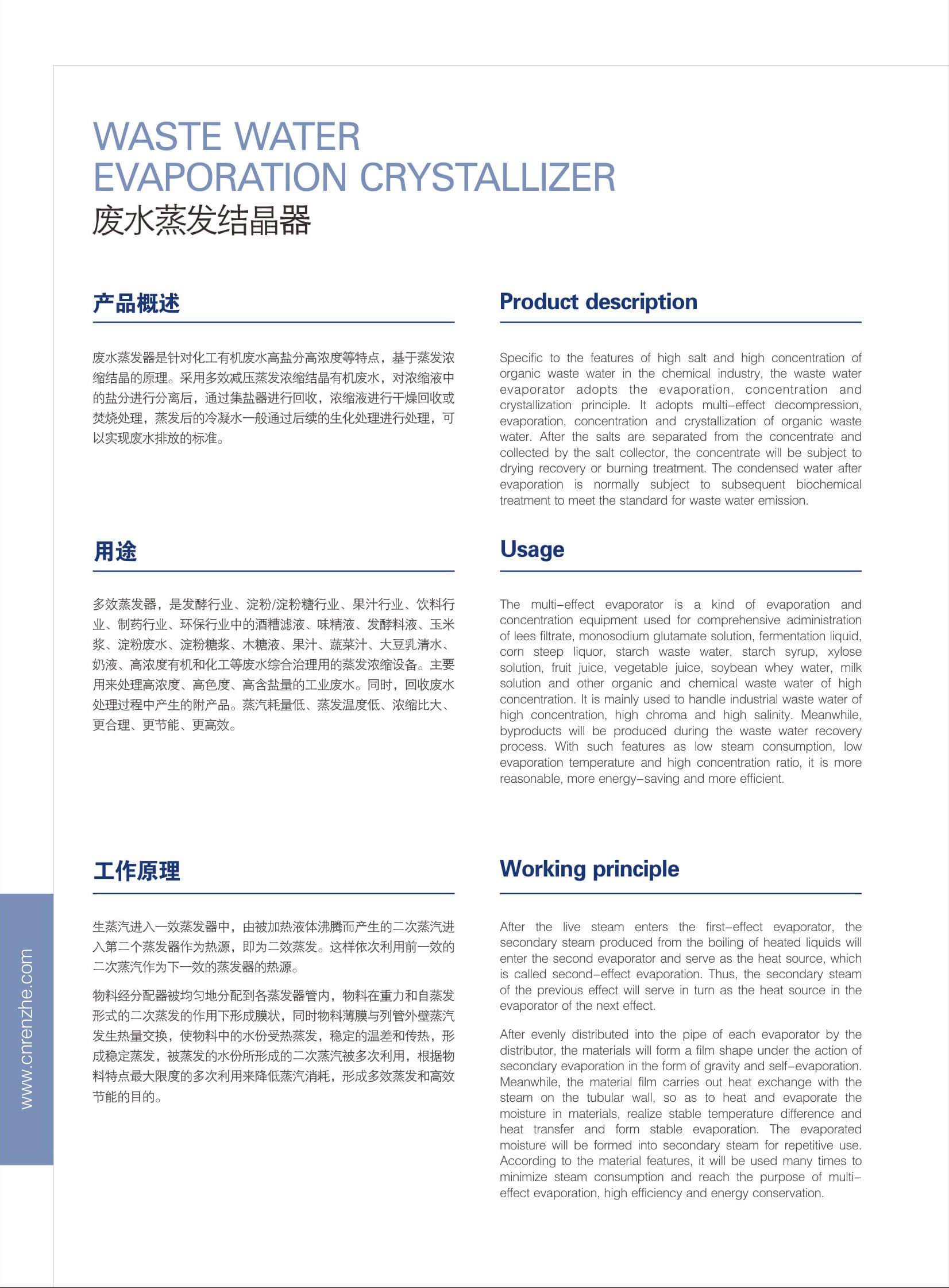 工業(yè)生產(chǎn)用水、漂洗用水、洗滌和其它工業(yè)生產(chǎn)流程中都會(huì)產(chǎn)生大量的含有各種各樣高濃度污染物的廢水。這些廢水都需要經(jīng)過內(nèi)部系統(tǒng)的處理,才能排放到公共排污系統(tǒng)或河流、湖泊、海洋中。而很多時(shí)候,我們無法清楚地給出廢水的性質(zhì),如廢水的成分、TDS的組成,而且很多時(shí)候,廢水中的成分經(jīng)濟(jì)價(jià)值不高,回收利用不經(jīng)濟(jì),或者您需要高度濃縮廢水,那么,用熱力分離技術(shù)處理廢水無疑是上佳之選。 當(dāng)設(shè)計(jì)蒸發(fā)和結(jié)晶設(shè)備時(shí),我們需要考慮諸多因素,例如原料的構(gòu)成、濃縮產(chǎn)品的目的、能源狀況、當(dāng)?shù)氐膶?shí)際情況、電能或蒸汽的價(jià)格、場地、企業(yè)的布局規(guī)劃等等。